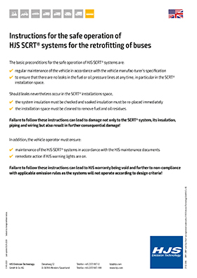 Instructions for the safe operation of HJS SCRT® systems when retrofitting buses!