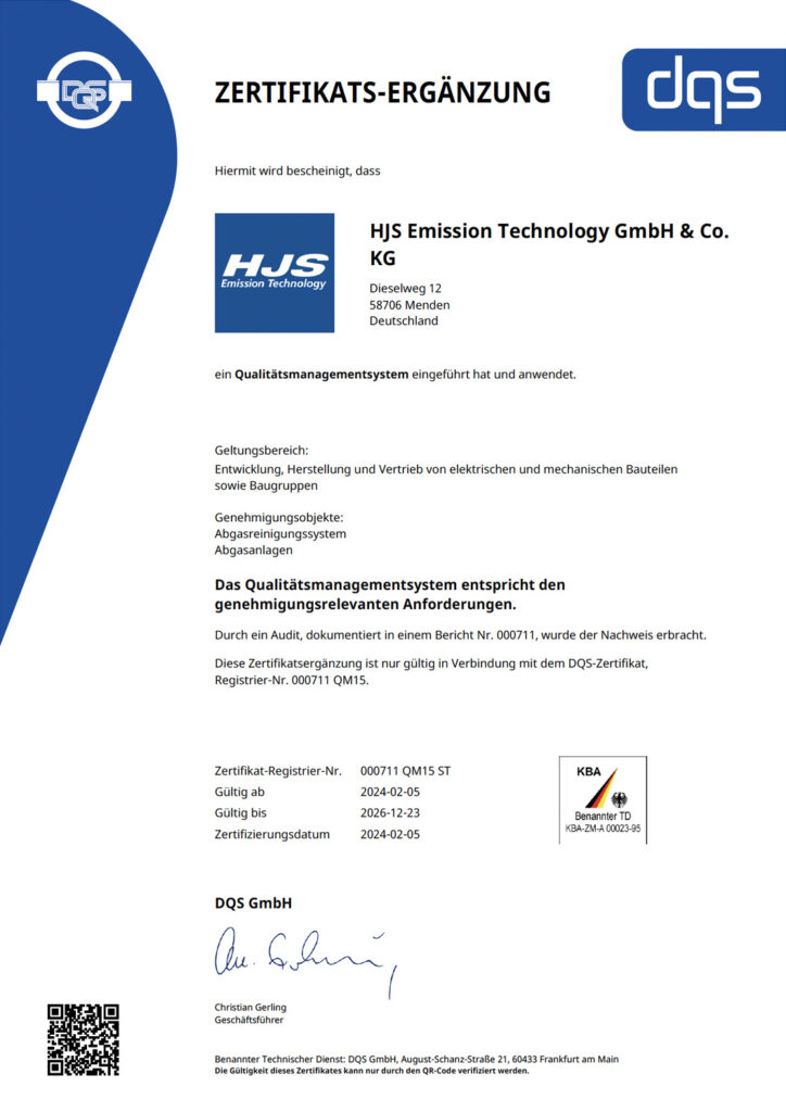 Certificate supplement quality management system